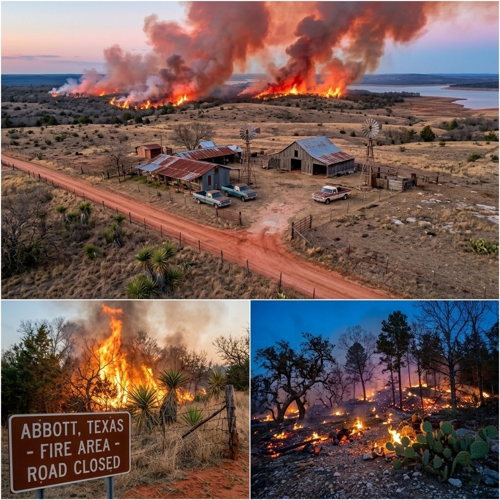 A fast-moving wildfire has placed the small Texas town of Abbott under immediate threat, as emergency officials issue mandatory evacuation orders across multiple high-risk zones, warning residents that the situation has escalated beyond precaution and into a critical fight for safety.