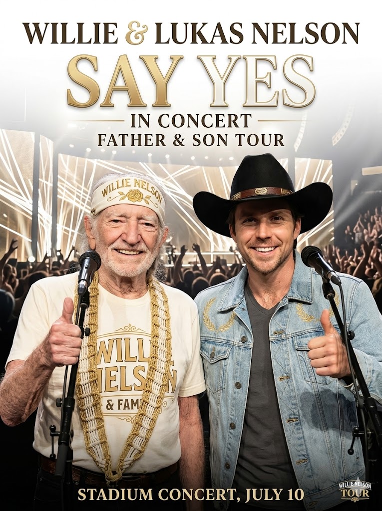 On one side stood Willie Nelson, his presence unmistakable, defined not by movement or spectacle, but by a stillness that comes only from experience, a lifetime of music etched into every note he sings. On the other stood Lukas Nelson, steady and grounded, his voice already shaped by his own journey, yet undeniably connected to the path his father helped create.